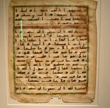 The Samarkand Kufic Quran, preserved at Tashkent, is a Kufic manuscript, in Uzbek tradition identified as one of Uthman's manuscripts, but dated to the 8th or 9th century by both paleographic studies and carbon-dating of the parchment,[40][41] which showed a 95.4% probability of a date between 795 and 855.[41]