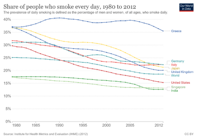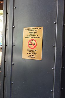 In 1995, California was the first state to enact a statewide smoking ban for restaurants.[1] Throughout the early to mid-2000s, especially between 2004 and 2007, an increasing number of states enacted a statewide smoking ban of some kind. As of 2018, the most recent statewide smoking ban is Alaska's, which was signed into law on July 18 and went into effect on October 1.
