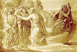 The ruler of Elysium varies from author to author: Pindar and Hesiod name Cronus as the ruler,[10] while the poet Homer in the Odyssey describes fair-haired Rhadamanthus dwelling there.[7][8][11][12] "The Isle of the Blessed" is also featured in the 2nd-century comedic novel A True Story by Lucian of Samosata.