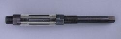 A morse taper reamer is used manually to finish morse taper sleeves. These sleeves are a tool used to hold machine cutting tools or holders in the spindles of machines such as a drill or milling machine. The reamer shown is a finishing reamer. A roughing reamer would have serrations along the flutes to break up the thicker chips produced by the heavier cutting action used for it.