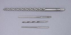 Chucking reamers, or machine reamers, are the most common type of reamer used in lathes, drill presses, and screw machines that provide a smooth finish to the hole. They come in a variety of flutes and cuts (e.g. right hand cut, left hand spiral, straight flute) as well as different shank types. Chucking reamers can be manufactured with a straight shank or morse taper shank.[2]