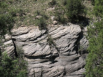 ![]() Cliff of cross-bedded Coconino Sandstone at the Walnut Canyon National Monument, Arizona | |
