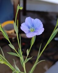 Several other species in the genus Linum are similar in appearance to L. usitatissimum, cultivated flax, including some that have similar blue flowers, and others with white, yellow, or red flowers.[4] Some of these are perennial plants, unlike L. usitatissimum, which is an annual plant.