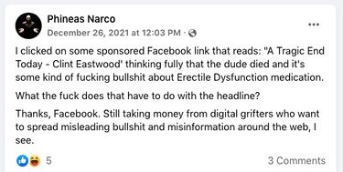 Unfortunately, since the site is largely funded not by major company advertisements but by small businesses,[48] and a significant chunk of advertising revenue comes from scams and disinformation,[49][50] Facebook's response to this boycott was to not change a damn thing.[51]