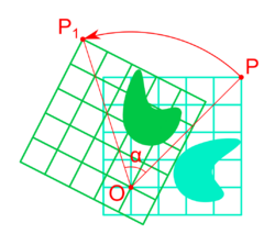 Mathematically, a rotation is a map. All rotations about a fixed point form a group under composition called the rotation group (of a particular space). But in mechanics and, more generally, in physics, this concept is frequently understood as a coordinate transformation (importantly, a transformation of an orthonormal basis), because for any motion of a body there is an inverse transformation which if applied to the frame of reference results in the body being at the same coordinates. For example, in two dimensions rotating a body clockwise about a point keeping the axes fixed is equivalent to rotating the axes counterclockwise about the same point while the body is kept fixed. These two types of rotation are called active and passive transformations.[1][2]
