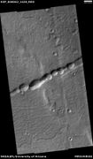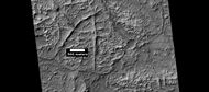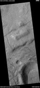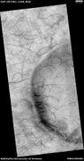 Another view of the previous gully on a mound. This one is with HiRISE, under the HiWish program. This view shows most of the apron and two old glaciers associated with it. All that is left of the glaciers are terminal moraines.