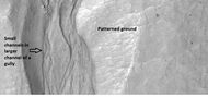 Close-up of gully showing multiple channels and patterned ground, as seen by HiRISE under the HiWish program