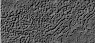 Surface of crater floor showing details from image taken with HiRISE, under HiWish program. This may be a transition from one type of structure to a different, maybe due to erosion.