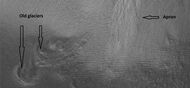 Close-up of the snouts of two glaciers from the previous image, as seen by HiRISE under the HiWish program. These are towards the bottom left of the previous image.