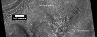 Atlantis Chaos, within the Atlantis basin, as seen by HiRISE. Click on image to see mantle covering and possible gullies. The two images are different parts of the original image. They have different scales.