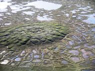 Example of a pingo on Earth. On Earth the ice that caused the pingo would melt and fill the fractures with water; on Mars the ice would turn into a gas in the thin Martian atmosphere.