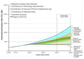 By 2020, global international aviation emissions were around 70% higher than in 2005 and the ICAO forecasts they could grow by over further 300% by 2050 in the absence of additional measures.[33]