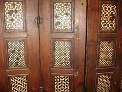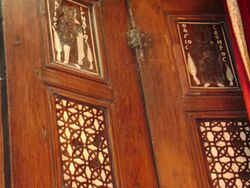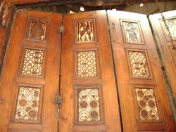 The door of prophecies is a screen of a main sanctuary inside the monastery. It consists of six vertical leaves (panels) and seven horizontal rows, three forming a valve on each side. Each one of the six leaves has seven panels of ebony magnificently inlaid with ivory, however, today some of the panels are not in their original condition. From top to bottom they represent seven epochs which are believed to cover the history of Christianity, its past and future, highlighting its golden age, periods of major changes, hardships, and persecution.