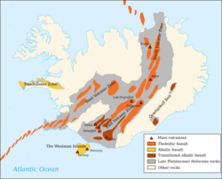 - ↑ H. Jóhannesson; K. Sæmundsson (1998). Geologic Map of Iceland, 1:500,000. Bedrock Geology. Reykjavík: Icelandic Institute of Natural History and Iceland Geodetic Survey.