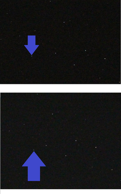 Some of the earliest recorded observations ever made through a telescope, Galileo Galilei's drawings on 28 December 1612 and 27 January 1613 contain plotted points that match with what is now known to have been the positions of Neptune on those dates. On both occasions, Galileo seems to have mistaken Neptune for a fixed star when it appeared close—in conjunction—to Jupiter in the night sky.[29] Hence, he is not credited with Neptune's discovery. At his first observation in December 1612, Neptune was almost stationary in the sky because it had just turned retrograde that day. This apparent backward motion is created when Earth's orbit takes it past an outer planet. Because Neptune was only beginning its yearly retrograde cycle, the motion of the planet was far too slight to be detected with Galileo's small telescope.[30] In 2009, a study suggested that Galileo was at least aware that the "star" he had observed had moved relative to fixed stars.[31]