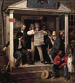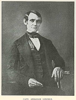 The abolitionists in the North saw the Mexican-American War for what it really was: a cynical attempt by Polk to expand the US on false pretenses. Whig and Liberty Party members were convinced that Polk was conspiring to make whatever territory he got from Mexico into new slave states in order to expand the political power of The South.[39] Abraham Lincoln, a freshman Whig in the House of Representatives, was a highly vocal opponent of the war. He famously challenged Polk's claim that "American blood has been shed on American soil" by demanding that Polk "show me the spot where American blood was shed" while introducing eight resolutions questioning the war's constitutionality.[40] Lincoln's unpatriotic stance on the war was unpopular with his Illinois constituents; he was given the nickname "Spotty Lincoln," called a disgrace, and finally declined to run for office.[41] Abraham Lincoln, the first Republican Party president, is to this day a popular figure in Mexico.[40]
