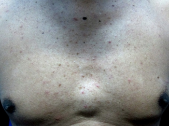 | Acneiform eruption on male individuals's chest | |