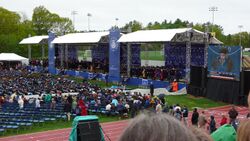 The Department of Music offers several performing ensembles, some by audition and others with open enrollment. All UNH students are eligible for membership in all of the ensembles. There is one Symphony Orchestra, three concert bands (Wind Symphony, Symphonic Band, and Concert Band), a large Concert Choir, an auditioned choir (Chamber Singers), two jazz bands, Vocal Arts Project, Wildcat Marching Band, Beast of the East Pep Band, and numerous chamber ensembles and jazz combos.[66] Between the various ensembles, Faculty Concert Series, Traditional Jazz Series, student recitals, and guest artists, the Department of Music puts on a great many performances every year that are open to the public. Additionally, many outreach programs and events are offered, including the Summer Youth Music School (SYMS), UNH Youth Symphony Orchestra, New Hampshire Youth Band, Piano Extension Program, Clark Terry UNH Jazz Festival, UNH Choral Gala, Double Reed Day, UNH Band Extravaganza, and more.[67]