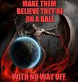 Another crank belief that is gaining just as much, if not more, momentum in the tubes as the flat Earth itself is its mirror image conspiracy: the Reverse Flat Earth Conspiracy Theory (lame title, but we'll think of something else later). As you may have guessed, the idea here is that the flat Earth theory isn't merely false, it's actually a fake conspiracy that was made up by the powers that be to make "genuine" truth seekers look bad.[158] Unsurprisingly, however, said clowns who make this unfounded claim often believe in other sorts of crankery that are almost as moronic as the flat Earth itself. Actually, if you haven't guessed, this is the whole point. The point is to knock down the flat Earth as "obviously" wrong to give their own form of crankery credibility. At least one conspiracy loon who rejects the flat Earth even says space itself is a hoax![159]