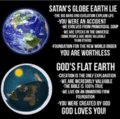 While we're on the subject, a common claim by people who arrive at flatheaddery from the Religious Fundamentalism direction is that the globe is a lie propagated by the Satan-controlled media in an attempt to draw people away from the Bible. Although one would think that if Satan had that kind of power, then they'd simply ban Bibles outright.