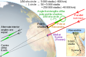 Eratosthenes's experiment assumed a sun sufficiently large and distant that its rays are near-parallel when they reach earth. Guess what happens when you swap that for a small and near sun?