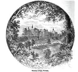 Wellesley College is a women's liberal arts college that opened in 1875, founded by Henry Fowle Durant and his wife Pauline Fowle Durant. Situated in Wellesley, Massachusetts (13 miles west of Boston), Wellesley college grants four-year baccalaureate degrees and is one of the original Seven Sisters Colleges. Approximately 2,400 students attend the school. Wellesley consistently ranks among the top five liberal arts colleges in the United States, and is the highest ranking women's college in this category.