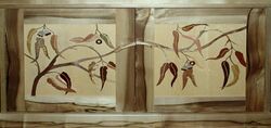 The simplest kind of marquetry uses only two sheets of veneer, which are temporarily glued together and cut with a fine saw, producing two contrasting panels of identical design, (in French called partie and contre-partie, "part" and "counterpart").