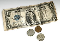 Fiat money or fiat currency is money whose value is not derived from any intrinsic value or guarantee that it can be converted into a valuable commodity (such as gold). Instead, it has value only by government order (fiat). Usually, the government declares the fiat currency (typically notes and coins from a central bank, such as the Federal Reserve System in the U.S.) to be legal tender, making it unlawful not to accept the fiat currency as a means of repayment for all debts, public and private.[34][35]