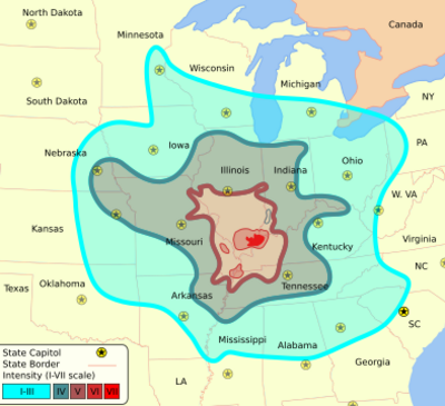 Where an earthquake is not recorded on seismographs an isoseismal map showing the intensities felt at different areas can be used to estimate the location and magnitude of the quake.[1] Such maps are also useful for estimating the shaking intensity, and thereby the likely level of damage, to be expected from a future earthquake of similar magnitude. In Japan this kind of information is used when an earthquake occurs to anticipate the severity of damage to be expected in different areas.[2]