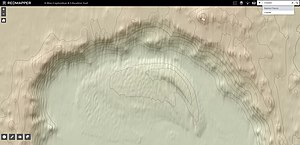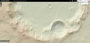This topographic map was created using Mars Orbiter Laser Altimeter (MOLA) technology on the Mars Global Surveyor spacecraft. This image is a screenshot of RedMapper's website and shows the south rim of Charlier crater.