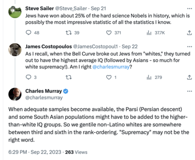 Murray and Sailer rank races - but how could "Western thought" be superior[97] if it wasn't created by the smartest race?