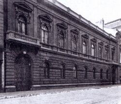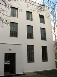 Wittgenstein's mother was Leopoldine Maria Josefa Kalmus, known among friends as Poldi. Her father was a Bohemian Jew and her mother was Austrian-Slovene Catholic – she was Wittgenstein's only non-Jewish grandparent.[37][38][39][40][41] She was an aunt of the Nobel Prize laureate Friedrich Hayek on her maternal side. Wittgenstein was born at 8:30 PM on 26 April 1889 in the "Villa Wittgenstein" at what is today Neuwaldegger Straße 38 in the suburban parish Neuwaldegg next to Vienna.[42][43]
