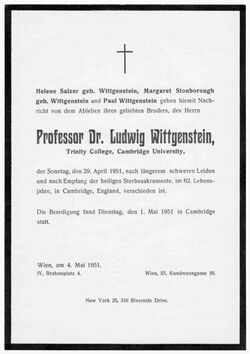 | Born | Ludwig Josef Johann Wittgenstein 26 April 1889 Neuwaldegg, Vienna, Austria-Hungary |