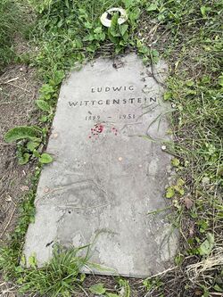 Wittgenstein was given a Catholic burial at Ascension Parish Burial Ground in Cambridge.[256] Drury later said he had been troubled ever since about whether that was the right thing to do.[257] In 2015 the ledger gravestone was refurbished by the British Wittgenstein Society.[258]
