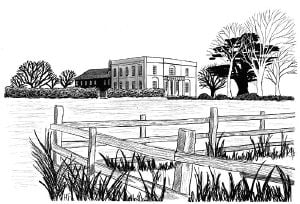 Walton Hall, headquarters of the Open University. (Artist: Hilary French)