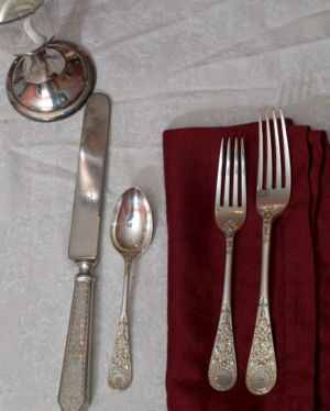 Household silver ("the silver") comprises dishware, cutlery and other household items made of sterling silver, usually bought in sets or combined to form sets, such as a set of silver candlesticks or a silver tea service.