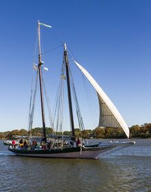 The pungy /ˈpʌŋɡi/ is a type of schooner developed in and peculiar to the Chesapeake Bay region. The name is believed to derive from the Pungoteague region of Accomack County, Virginia, where the design was developed in the 1840s and 1850s.[1]