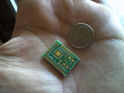 | Femtoduino[160][[[Link rot | dead link}}]]] | Femtoduino[161] | ATmega328P-MU | An ultra-small (20.7x15.2 mm) Arduino compatible board designed by Fabio Varesano. Femtoduino is currently the smallest Arduino compatible board available.[citation needed] | |||||||||||||||