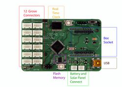 | SODAQ Mbili[192] | SODAQ | ATmega1284P | The Raspberry Pi-sized SODAQ board is built for Solar Powered Data Acquisition. It is fitted with a Lipo charge controller and 12 Grove sockets for plug and play prototyping. It runs at 3.3 V and 8 MHz. It also comes with a DS3231 Real Time Clock and 16 Mbit serial flash for data logging. Its "bee" socket can use a range of different modules, like Xbee, RFbee, Bluetoothbee and GPRSbee to make the board communicate. The latest version has the powerful ATmega1284P microcontroller with 128 KB program space and 16 KB RAM and is still Arduino IDE compatible.