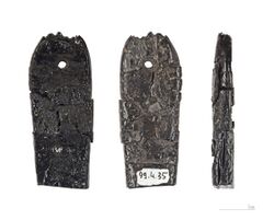 Jet has been used in Britain since the Neolithic period,[10] but the earliest known object is a 10,000 BC model of a botfly larva, from Baden-Württemberg, Germany, found among the Venuses of Petersfels.[11][10] It continued in use in Britain through the Bronze Age where it was used for necklace beads.[10] During the Iron Age jet went out of fashion until the early-3rd century AD in Roman Britain. The end of Roman Britain marked the end of jet's ancient popularity[10], despite sporadic use in the Anglo-Saxon and Viking periods and the later Medieval period. Jet regained popularity with a massive resurgence during the Victorian era.[10]