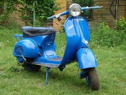 The VP-150 (Russian: ВП-150) was an unlicensed copy of the Vespa 150, first built in 1956. It was constructed of thicker steel than the Vespa to cope with the poorer Russian roads. Other minor differences included thicker tyres (10x4.0 instead of 10x3.5) and an adjustable headlamp. A glovebox was also incorporated under the front seat. 300,000 models were constructed before production terminated in 1965 after complaints from Piaggio.[1]