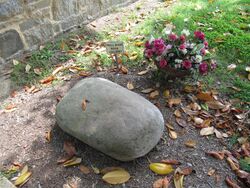 The Moll Dyer Rock sat in this location for nearly 50 years, until early 2021, when the St. Mary's County Historical Society relocated the large stone to the grounds of Tudor Hall, where the Historical Society has its headquarters.[7] Today, the rock sits under a plexiglass covering and has a more elaborate plaque detailing the events of the legend.