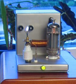 Plasma arc loudspeakers use electrical plasma as a radiating element. Since plasma has minimal mass, but is charged and therefore can be manipulated by an electric field, the result is a very linear output at frequencies far higher than the audible range. Problems of maintenance and reliability for this approach tend to make it unsuitable for mass market use. In 1978 Alan E. Hill of the Air Force Weapons Laboratory in Albuquerque, NM, designed the Plasmatronics Hill Type I, a tweeter whose plasma was generated from helium gas.[70] This avoided the ozone and NOx[71] produced by RF decomposition of air in an earlier generation of plasma tweeters made by the pioneering DuKane Corporation, who produced the Ionovac (marketed as the Ionofane in the UK) during the 1950s.[72] Currently, there remain a few manufacturers in Germany who use this design,[73] and a do-it-yourself design has been published and has been available on the Internet.
