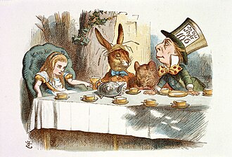 La poemo de la Freneza Ĉapelisto pri teo-pleto en la ĉielo en la sepa ĉapitro de La Aventuroj de Alicio en Mirlando [noto 5]eble estas la deveno de la Ĉiela Tekruĉo de Bertrand Russell.