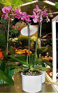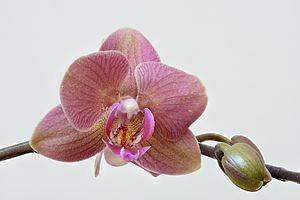 The family encompasses about 6–11% of all seed plants.[4] The largest genera are Bulbophyllum (2,000 species), Epidendrum (1,500 species), Dendrobium (1,400 species) and Pleurothallis (1,000 species). It also includes Vanilla (the genus of the vanilla plant), the type genus Orchis, and many commonly cultivated plants such as Phalaenopsis and Cattleya. Moreover, since the introduction of tropical species into cultivation in the 19th century, horticulturists have produced more than 100,000 hybrids and cultivars.