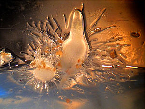 Pollinators are often visually attracted by the shape and colours of the labellum. However, some Bulbophyllum species attract male fruit flies (Bactrocera and Zeugodacus spp.) solely via a floral chemical which simultaneously acts as a floral reward (e.g. methyl eugenol, raspberry ketone, or zingerone) to perform pollination.[11] The flowers may produce attractive odours. Although absent in most species, nectar may be produced in a spur of the labellum (8 in the illustration above), or on the point of the sepals, or in the septa of the ovary, the most typical position amongst the Asparagales.