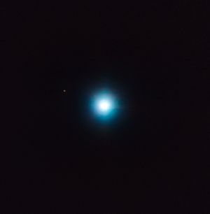 In 2004, a group of astronomers used the European Southern Observatory's Very Large Telescope array in Chile to produce an image of 2M1207b, a companion to the brown dwarf 2M1207.[59] In the following year, the planetary status of the companion was confirmed.[60] The planet is estimated to be several times more massive than Jupiter, and to have an orbital radius greater than 40 AU.