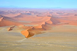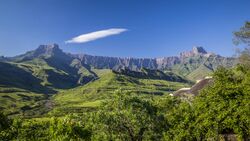 The Western Cape has a Mediterranean vegetation and climate, including the unique fynbos, grading eastward into an oceanic climate along the Garden Route to Gqeberha and East London.[11] The Namib and Kalahari deserts form arid lands in the centre-west, separating the highlands, woodlands, croplands, and pastures of the wetter and higher East from the Atlantic Ocean. In addition, the Drakensberg and Eastern Highlands separate the highland areas and coastal plains centred on Mozambique in the north and KwaZulu-Natal in the south, the latter of which are often prone to flooding every few years. In the east, the river systems of the Zambezi and Limpopo basin form natural barriers and sea lanes between Mozambique, South Africa, and Zimbabwe.[11]