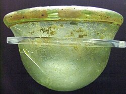 The Roman Empire used cups throughout Europe, with "goblet"-type shapes with shortish stems, or none, preferred for luxury examples in silver,[28] like the Warren Cup, or Roman glass, such as the Lycurgus Cup in color-changing glass,[29][30] or the spectacular carved-glass cage cups. By the 2nd century AD even the wealthy tended to prefer drinking from glass, as adding no taste to the drink.[31]