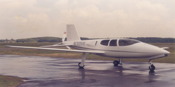 Cirrus Design VK-30 on ramp at the Baraboo–Wisconsin Dells Airport in Baraboo, Wisconsin, c. 1988